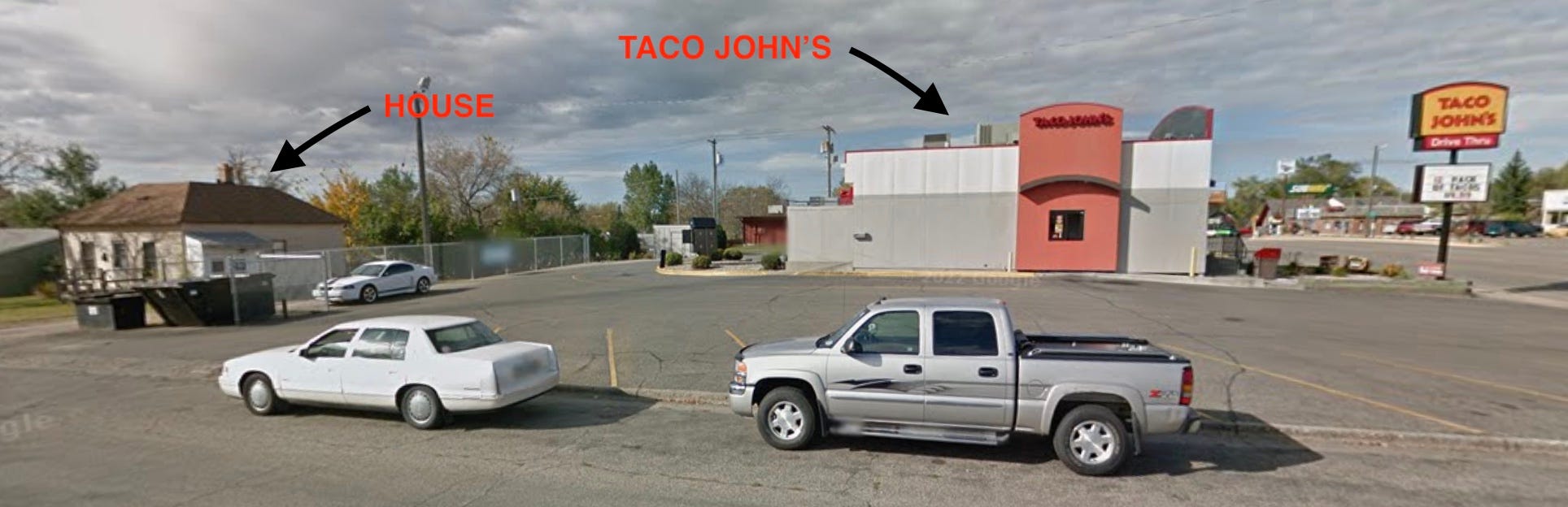 In the mid-1990s, I lived in the tiny house behind the Taco John’s described in the story.
